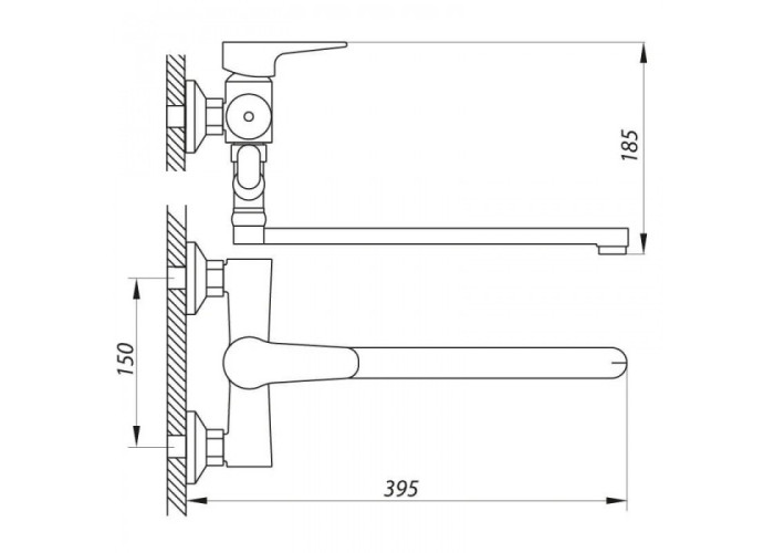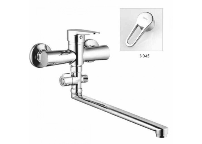Змішувач для ванни Wezer PUD-B045 обладнаний довгим плоским гусаком з виносним дивертором (перемикачем з крана на душ). Всю цю конструкцію можна зняти з корпусу і приєднати до нього тільки душовий шланг, використовуючи його в кабінах. З довгим гусаком конструкція більш універсальна, оскільки кран можна застосовувати для ванної та умивальника. Це дає можливість значно економити простір в приміщенні.