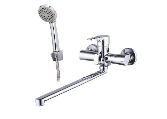 Довгий поворотний вилив змішувача для ванни Wezer PUD7-B045 дозволяє застосовувати його так само для умивальника, якщо він розташований поруч. Це зменшує необхідну кількість виходів труб і спрощує розведення.