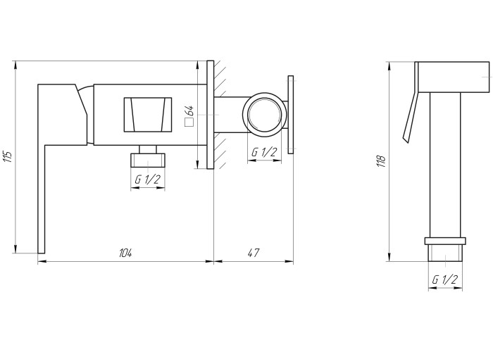 Змішувач гігієнічний TOPAZ ODISS TO 18604-H62-BB, моноблок, вбудований