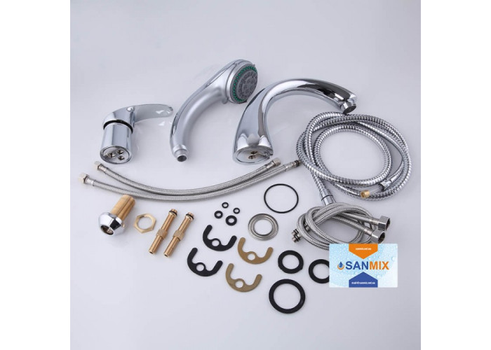 При покупці виробу необхідно враховувати, що виливши і перемикач кріпляться на шпильках, а держатель шланга - на гайці. Це захищає його і борта від пошкодження під час користування.