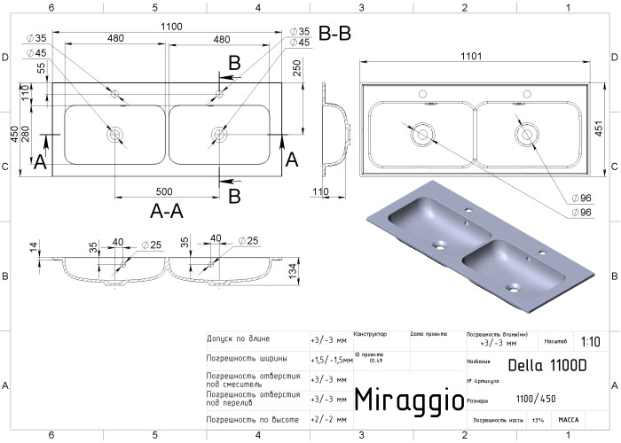 Умывальник с двумя чашами DELLA 1100-2 - идеальное решение, если не можете ни на минутку расстаться и любите чистить зубы вместе! Раковина с двумя чашами предназначена для ванной комнаты, может иметь как матовую, так и глянцевую поверхность.
