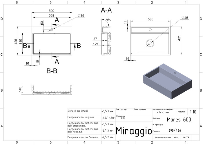 Невелика площа ванній не дозволяє встановити об'ємний умивальник? Не біда, адже раковини MARES 600 відрізняються не тільки стильним оформленням, а й компактними розмірами. Ви можете встановити такий умивальник на стільницю або тумбу, виконану в аналогічному дизайні.