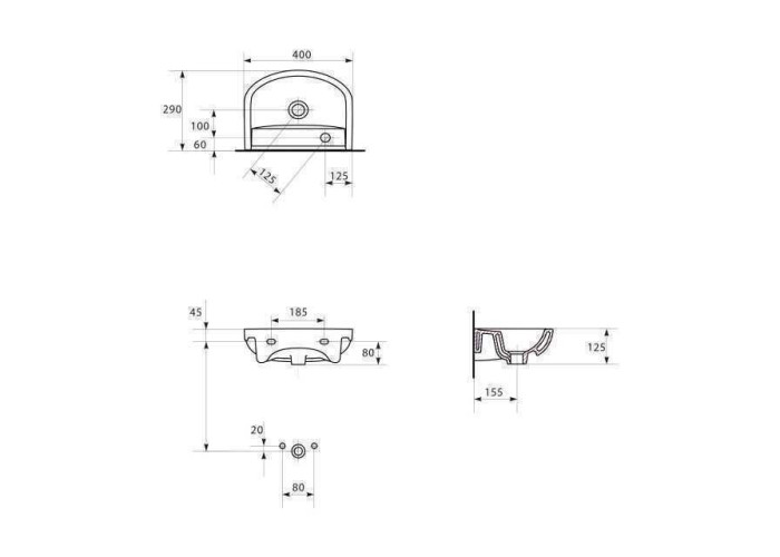 Керамічний умивальник ARTECO 40 лівий з отвором під змішувач і переливом. Умивальник чудово поєднується з меблями з серії ARTECO або з хромованим сифоном.