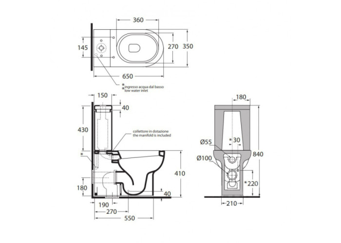 Комплект Azzurra Nuvola NUV100B1MBP включает в себя бачок с наборным и сливным механизмами, а также унитаз с быстросъемным сидением с системой soft-close, которая обеспечивает плавное и бесшумное опускание. Чаша унитаза - воронкообразная, является идеальным решением проблем вылетания брызг и плохого смывания нечистот. На бачке предусмотрена хромированная кнопка, которая при повторном нажатии не работает, тем самым экономит расход воды. Установка унитаза на пол не требует особых усилий.