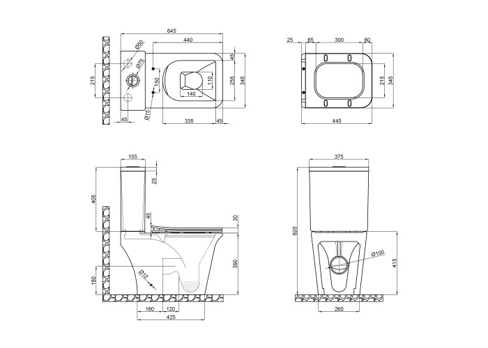 Унитаз, бачок, сливной/наборной механизм, сиденье, крепежи.