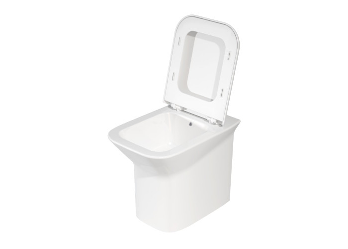 Унітаз Azzurra Prua PRU100EB1TR кріпиться впритул до стіни, не займає багато місця. Він виконаний з кераміки в білому кольорі та покритий емаллю для захисту від вологи та мікробів. Додатково виготовлений без обідка, тому бруд не скупчується. Сидіння обладнано мікроліфтом. Завдяки цьому пристрою кришка опускається плавно та безшумно.
