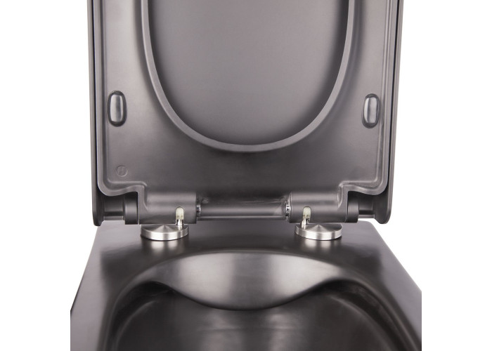 Унітаз підвісний Qtap Tern Rimless QT1733052ERMB має класичний дизайн, тому буде доречний в інтер‘єрі в будь-якому стилі. Сидіння з функцією SOFT CLOSE, яке опускается плавно та безшумно, не шкодить покриттю унітаза. Унітаз виконаний з кераміки в чорному кольорі та покритий емаллю для захисту від вологи. Унітаз без обідка, тому бруд не скупчується під ним, немає неприємного запаху, швидко миється.