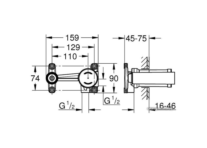 Для змішувача на 2 отвори. Для прихованого монтажу. Без комплекту верхньої монтажної частини. Керамічний картридж 35 мм. Регулювання витрати води. Обмежувач температури. Вилив може бути встановлений праворуч або ліворуч.