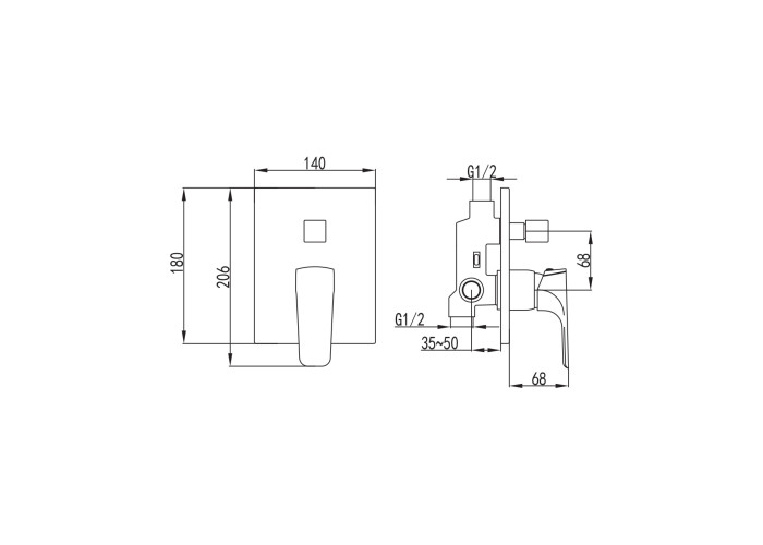 Смеситель скрытого монтажа для ванны, однорычажный, хром