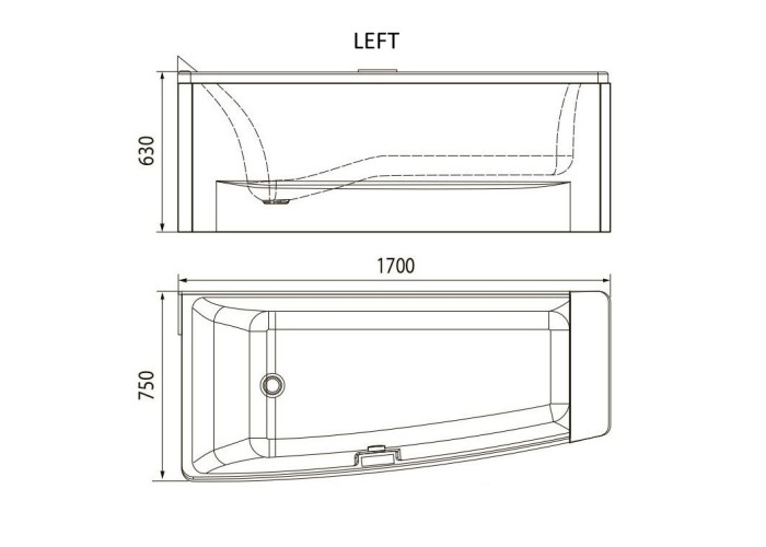 • Размеры (ДxШxВ) - 1700x750x630 мм, ширина борта под смеситель 10 см