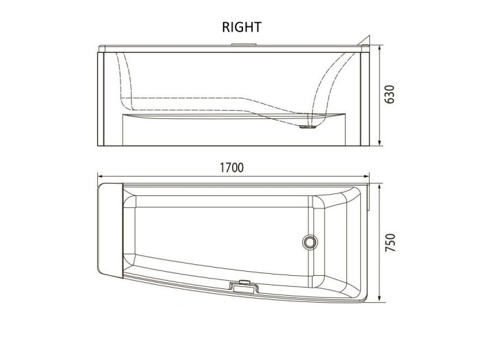 • Размеры (ДxШxВ) - 1700x750x630 мм, ширина борта под смеситель 10 см