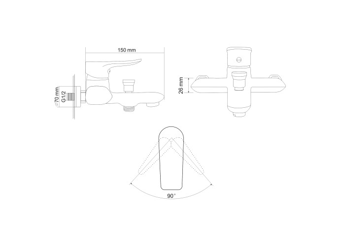 VELUM смеситель для ванны однорычажный, хром 35 мм