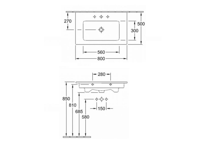 VERITY LINE умывальник 80*50см, цетр.отвестие под смес.выбито, с переливом, цвет белый альпин