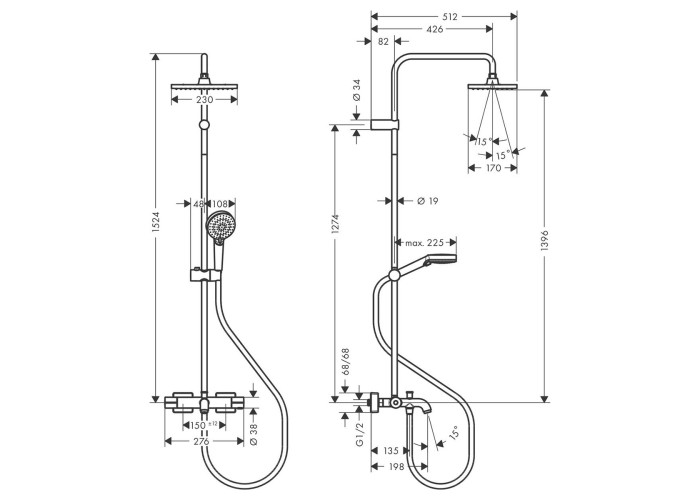 VERNIS BLEND душевая система Showerpipe 230 с термостатом для ванны
