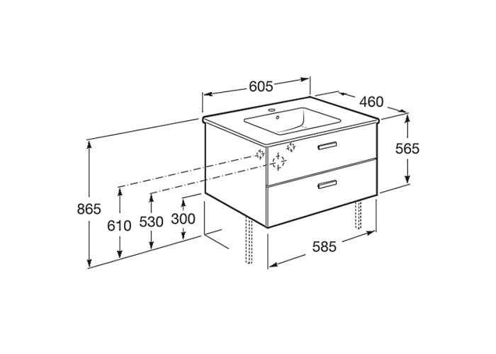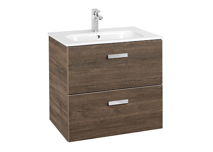 VICTORIA BASIC тумба с умывальником 600*450*565 мм, подвесная, 1 отверстие для смесителя, с переливом, выдвижные ящики, цвет кедр.