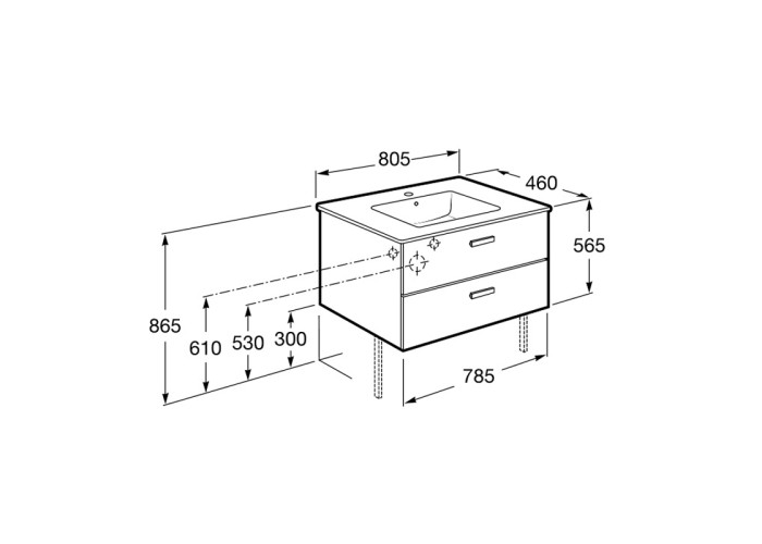 VICTORIA BASIC тумба с умывальником 800*450*565 мм, подвесная, выдвижные ящики, цвет береза.