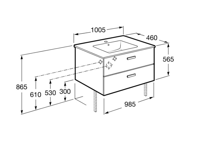 Комплект от компании Roca сделан в минималистичном стиле придаст атмосферу спокойствия и легкости в вашу ванную комнату. Серия Victoria произведена специально для ванной комнаты, что бы сделать её удобней и красивей. В изготовлении комплекта используются только высококачественные материалы которые прослужат долго вашему дому. Материал тумбы - МДФ с влагостойким покрытием, материал умывальника - санфаянс. Тумба оснащена двумя выдвижными ящиками с функцией доводчика.