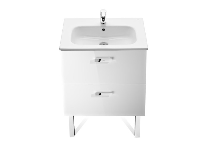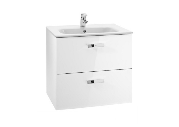 Материал тумбы - МДФ с влагостойким покрытием, материал умывальника - санфаянс. Тумба оснащена двумя выдвижными ящиками с функцией доводчика.