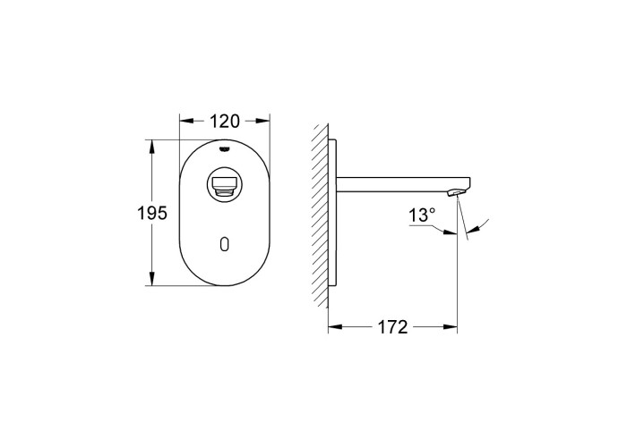 Внешняя часть крана для раковины Grohe Euroeco Cosmopolitan E 36273000 для холодной или предварительно смешанной, изготовлена из высококачественной латуни. Управление происходит с помощью инфракрасного датчика движения. Представлена в виде излива и накладной панели с хромированной глянцевой поверхностью. Для установки требуется скрытая часть смесителя (36 336 001, 36 337 00), которая не входит в комплект поставки. Благодаря скрытому монтажу все коммуникации спрятаны.