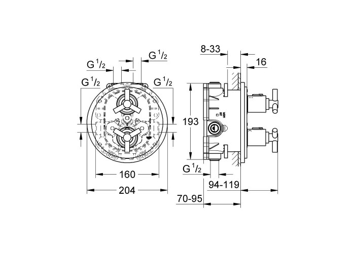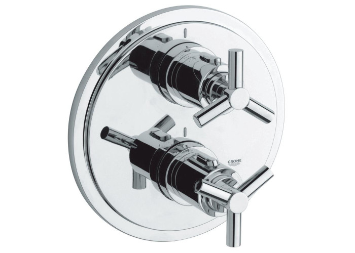 GROHE StarLight - хромоване покриття. GROHE SafeStop - обмеження температури води до 38 °C. GROHE EcoButton - зниження споживання води до 50%. GROHE EcoJoy - водозберігаюча технологія. GROHE SilkMove - плавність ходу важеля. GROHE TurboStat - забезпечення і підтримання температури води. GROHE EasyLogic - чітке маркування на корпусі. GROHE AquaDimmer - легке перемикання між споживачами.