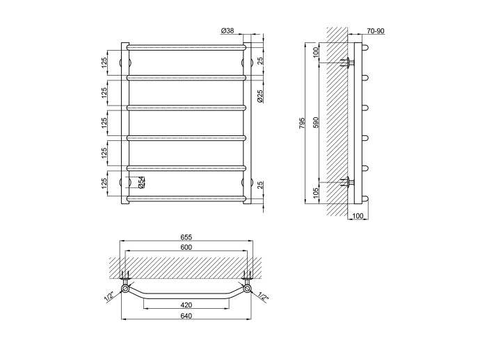 Водяна сушарка для рушників Lidz Trapezium (CRM) D38/25 600x800 P6 гармонійно доповнить будь-який інтер‘єр вашої ванної кімнати. Водяна сушарка для рушників виконана з нержавіючої сталі марки AISI 304. Завдяки їй у ванні не утворюється грибок і неприємний запах, тепло зберігається, а рівень вологості не перевищує оптимальний. Крім того, на ній зручно сушити рушники та білизну.