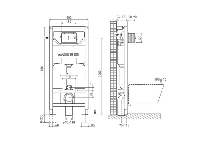 - Глубокая сервисная шахта - 20-90 мм от поверхности стены