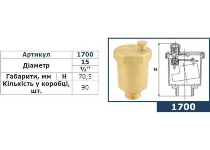 Воздухоотводчик автоматический 1/2" SOLOMON 1700 + клапан Brass