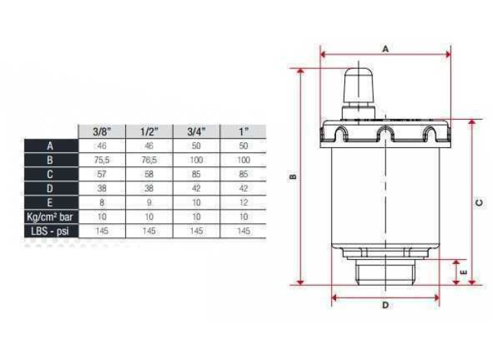 Технические характеристики воздухоотводчика: