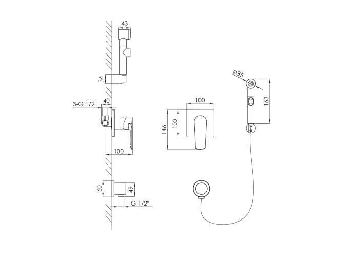 Смеситель скрытый+гигиенический душ