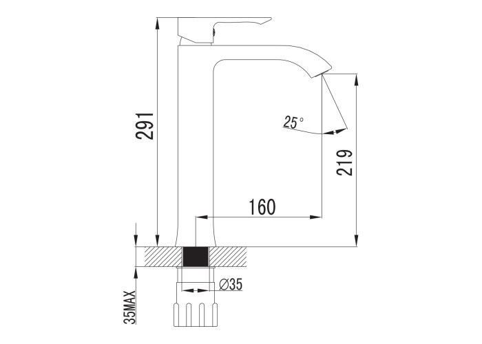 VYSKOV смеситель для раковины высокий,хром, 35мм Однорычажный, керамический узел смешивания, расход воды до 7 л/мин, двигающийся аэратор, подходит для проточных нагревателей