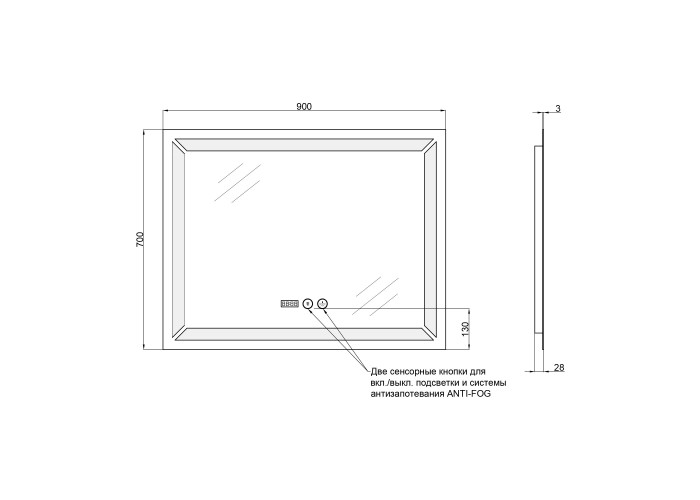 Зеркало Qtap Mideya с антизапотеванием (DC-F605-1) 900х700 QT2078F6051W укомплектовано светодиодной LED лентой с ровным, насыщенным, ярким свечением белого цвета. LED лента не создает негативного влияния на зрение человека. В зеркале предусмотрена функция ANTI-FOG - защита от запотевания. Управление осуществляется двумя сенсорными кнопками на передней части зеркала. В зеркало вмонтированы часы и индикатор температуры окружающей среды в градусах Цельсия.