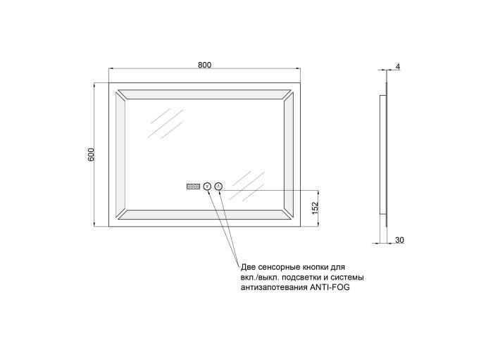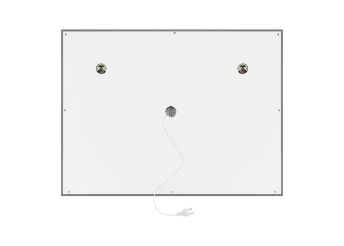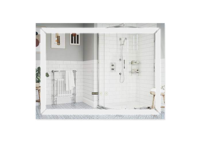 Дзеркало Qtap Mideya з антизапотіванням (DC-F605) 800х600 QT2078F605W укомплектоване світлодіодною LED стрічкою з рівним, насиченим, яскравим свіченням білого кольору. LED стрічка не створює негативного впливу на зір людини. У дзеркалі передбачена функція ANTI-FOG - захист від запотівання. Управління здійснюється двома сенсорними кнопками на передній частині дзеркала. У дзеркало вмонтовано годинник та індикатор температури навколишнього середовища в градусах Цельсія.