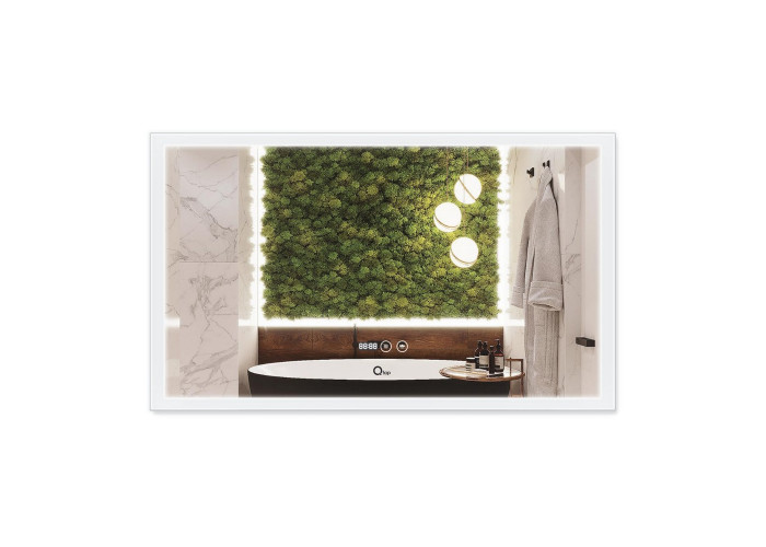 Зеркало Qtap Mideya с антизапотеванием (DC-F615) 1000х600 QT2078F615W укомплектовано светодиодной LED лентой с ровным, насыщенным, ярким свечением белого цвета. LED лента не создает негативного влияния на зрение человека. В зеркале предусмотрена функция ANTI-FOG - защита от запотевания. Управление осуществляется двумя сенсорными кнопками на передней части зеркала. В зеркало вмонтированы часы. Во время изготовления изделия использовались влагостойкие материалы, поэтому зеркало прослужит долгие го