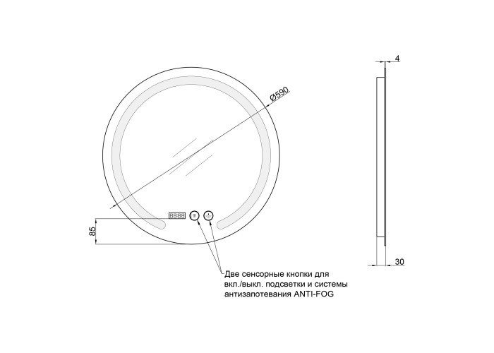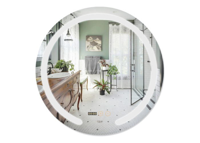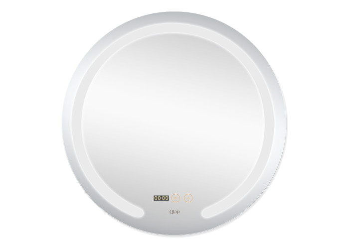 Дзеркало Qtap Mideya з антизапотіванням (DC-F802) 600х600 QT2078F802W укомплектоване світлодіодною LED стрічкою з рівним, насиченим, яскравим свіченням білого кольору. LED стрічка не створює негативного впливу на зір людини. У дзеркалі передбачена функція ANTI-FOG - захист від запотівання. Управління здійснюється двома сенсорними кнопками на передній частині дзеркала. У дзеркало вмонтовано годинник та індикатор температури навколишнього середовища в градусах Цельсія.