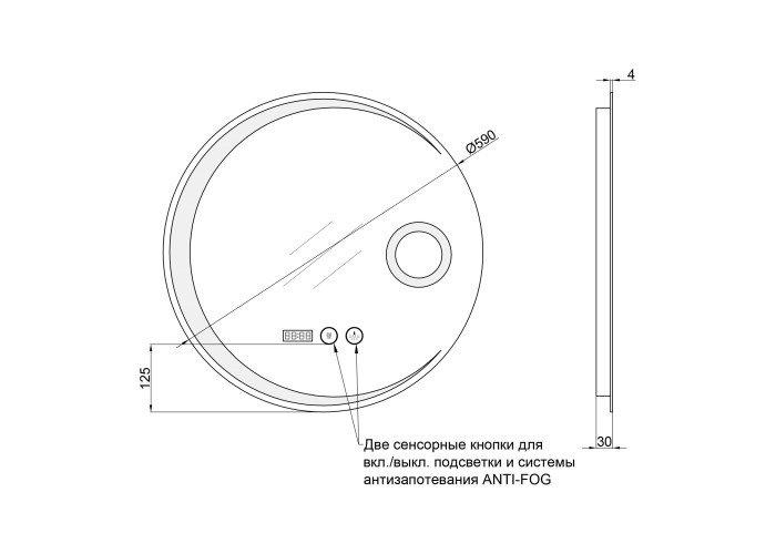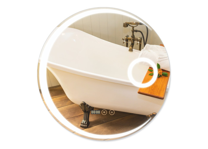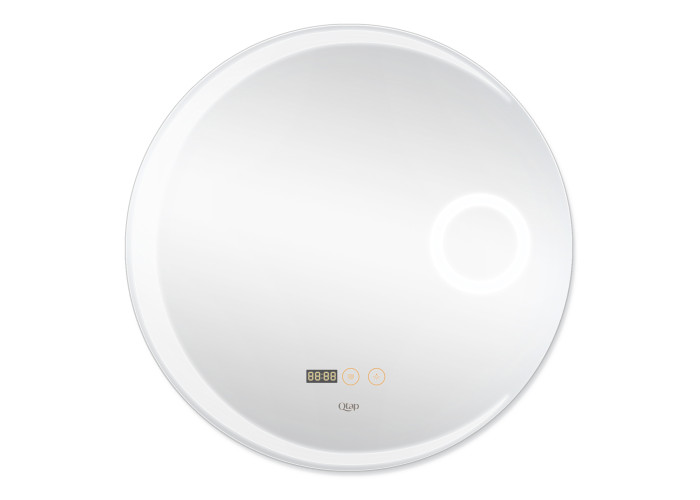 Дзеркало Qtap Mideya з антизапотіванням (DC-F804) 600х600 QT2078F804W укомплектоване світлодіодною LED стрічкою з рівним, насиченим, яскравим свіченням білого кольору. LED стрічка не створює негативного впливу на зір людини. У дзеркалі передбачена функція ANTI-FOG - захист від запотівання. Управління здійснюється двома сенсорними кнопками на передній частині дзеркала. У дзеркало вмонтовано годинник та індикатор температури навколишнього середовища в градусах Цельсія.
