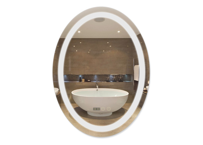 Зеркало Qtap Mideya с антизапотеванием (DC-F805-1) 600х800 QT2078F8051W укомплектовано светодиодной LED лентой с ровным, насыщенным, ярким свечением белого цвета. LED лента не создает негативного влияния на зрение человека. В зеркале предусмотрена функция ANTI-FOG - защита от запотевания. Управление осуществляется двумя сенсорными кнопками на передней части зеркала. В зеркало вмонтированы часы и индикатор температуры окружающей среды в градусах Цельсия.